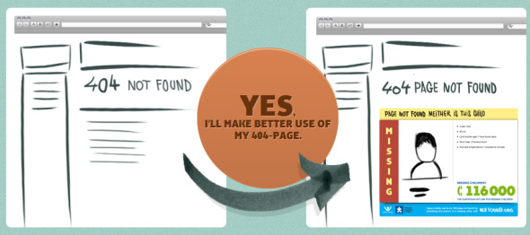 你一天能在網(wǎng)上看到多少404錯誤頁面?為什么不充分利用一下這種資源呢?現(xiàn)在,你可以用它幫助別人尋找失蹤的孩子。