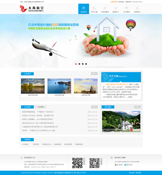 大禹航空主要從事中國(guó)民航業(yè)技術(shù)研發(fā)及運(yùn)用,立足中國(guó)區(qū)域,利用云計(jì)算技術(shù)緊密結(jié)合民航業(yè)、旅游業(yè)、酒店業(yè)的商務(wù)著眼點(diǎn),以航空服務(wù)及入侵航空銷售與政策渠道,通過(guò)核心人力專業(yè)合作且互補(bǔ)資源,建立了具有O2O運(yùn)營(yíng)模式的一站式航旅服務(wù)智能化平臺(tái)(DayuAir.com),并配套了專業(yè)的“中國(guó)民航呼叫中心創(chuàng)新基地”和“空鐵聯(lián)運(yùn)服務(wù)中心”為平臺(tái)提供線上線下的支持與保障。